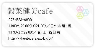 ということで、今回の旅はまず美味しいご飯を食べるところから。 選んだのは、KYOENの中にある穀菜健美cafeです。 ここは「ごはんと野菜の健康で美味しい食事」をコンセプトに、オーガニックにこだわった料理を提供しているお店です。 是非押さえていただきたいのが「週替わりランチ(¥980)」なんです。ご飯は玄米or五穀米、さらに汁物を「本日の具だくさん汁」から選べるところが嬉しい ポイント。この日は、「長いものねぎ入りチヂミ、高野豆腐の筑前煮、大豆とツナのサラダ」という内容でした。 五穀米+季節のごま味噌けんちん汁をチョイスしてみました。全体的に、けしてしつこくなく、けれど丁寧に素材を活かした味付けが食欲を