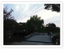 そろそろ日が暮れてきたので、最後のとっておきへ・・・・・・向かいましょうか。 たくさん歩いたけれども、なんだかゆったりできた気分です。 知恩院の三門の前にある知恩院道、もしくは華頂道を西へ向かい、東大路通りまで出ます。15分もあれば辿り着けます。